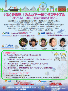 | 13:40 | 講義3:暮らしのぐるぐる 「大阪湾のごみと私たちのくらしのつながり」 | 大阪公立大学 准教授 千葉 知世 |
